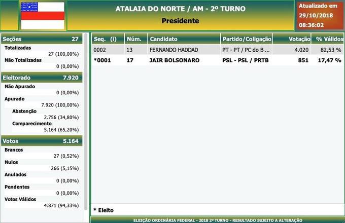 Início Amazonas 2º Turno - Presidência da República - Atalaia do Norte