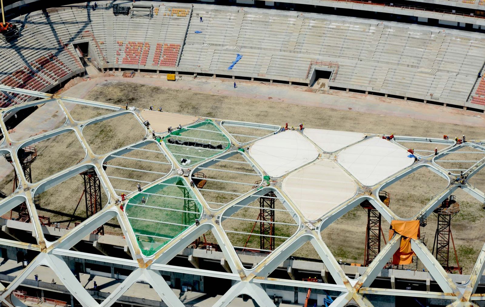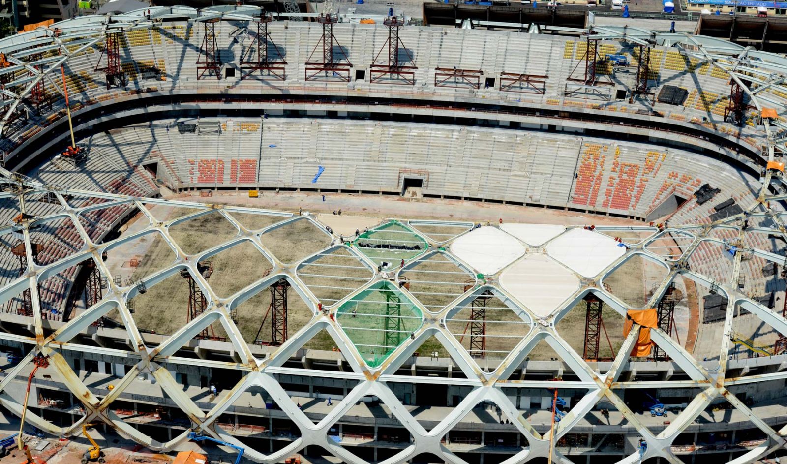 Conforme previsto no cronograma, esta etapa de lançamento e montagem das estruturas de aço estão previstas para serem concluídas neste mês de outubro. A partir daí, o trabalho prossegue com a instalação das membranas que darão o toque final na aparência externa da Arena.