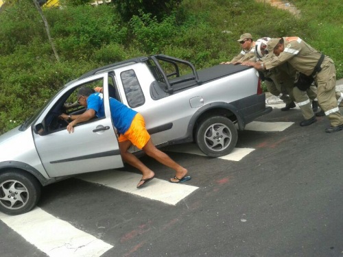 Manaus/AM – Se os agentes do Manaustrans multaram o proprietário da Fiat Strada que parou na alameda Cosme Ferreira, nesta manhã de sábado, atrapalhando o trânsito nas proximidades do Hospital João Lúcio, não se sabe, mas que os marronzinhos suaram a farda para remover o veículo, isso tem a foto par provar. Será que têm direito um extra pelo esforço?