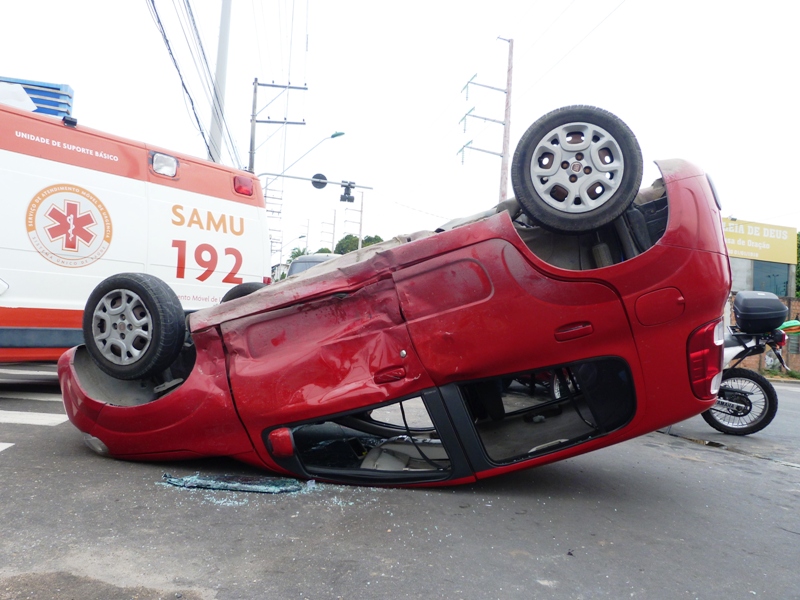 Dois veículos do mesmo modelo  e cor, se envolveram em um acidente com capotamento, hoje por volta das 14h, na av. Tefé esquina com a rua Marques da Silveira,  deixando uma família ferida.