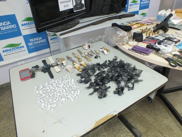 Durante a operação foram apreendidas aproximadamente 400 trouxinhas contendo sustância entorpecente, entre oxi, pasta base de cocaína e maconha, duas balanças de precisão, uma pistola PT 840, uma espingarda, dois televisores LCD de 32 polegadas, um veículo Fiat Strada, de cor vermelha e placas NOP – 6354, R$ 700 em espécie, além de celulares, máquinas fotográficas, joias e relógios, possivelmente trocados por substâncias entorpecentes.