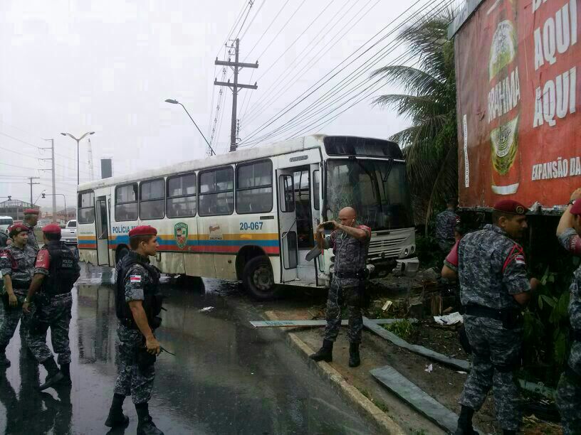 O ônibus do Batalhão de Choque da PM sofreu um acidente, na rodovia Torquato Tapajós, próximo do Centro de Treinamento do Detran-AM, que por pouco não se transformou numa tragédia. O veículo quase capotou com mais de 50 soldados dentro do ônibus. Após derrapar na pista, quase capotou, chocando-se com um poste de energia elétrica.