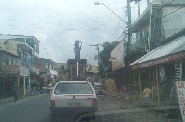 No bairro São José, Zona Leste, máquina atrapalha o trânsito