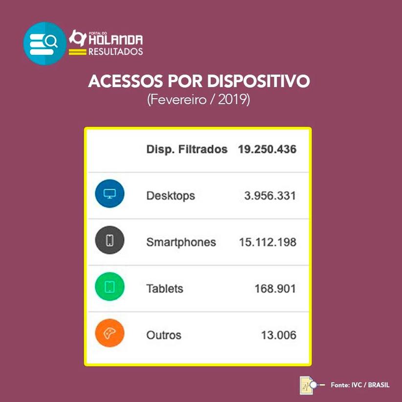 Das cerca de 19 milhões de visualizações do Portal do Holanda no mês de fevereiro, mais de 15 milhões partiram de celulares. Os números são do IVC - Instituto Verificador de Comunicação, entidade que audita sites nacionais com dados detalhados sobre tráfego na web.