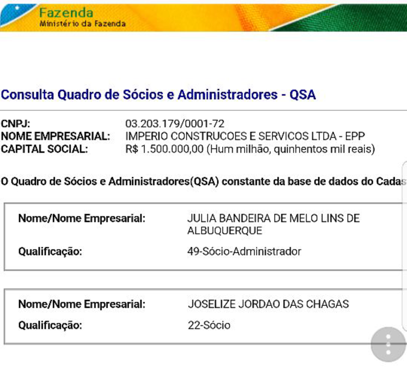 Acima, o valor das obras (supostamente  realizadas) homologadas pelo governo interino de David Almeida. Abaixo, a prova da relação da construtora com a familia Lins.