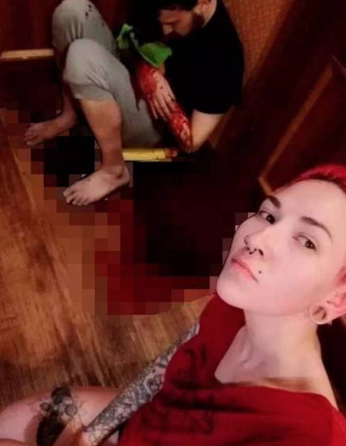 De acordo com o The Sun, Olga afirmou que o companheiro tentou estrangulá-la, mas acabou sofrendo um contragolpe. Ela desferiu vários golpes contra o ex e 'tranquilamente' posou par uma selfie com a vítima agonizando no fundo.