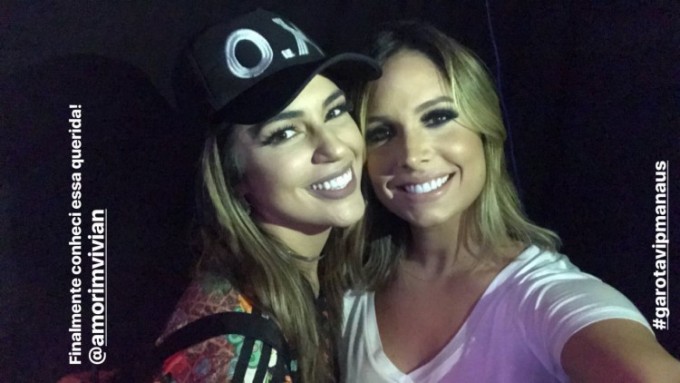 Vivian estava assistindo o show na área de trás do palco, ao lado da esposa de Safadão, Thyane Dantas, que postou uma foto com ela no Insta Stories: "Finalmente conheci essa querida".
