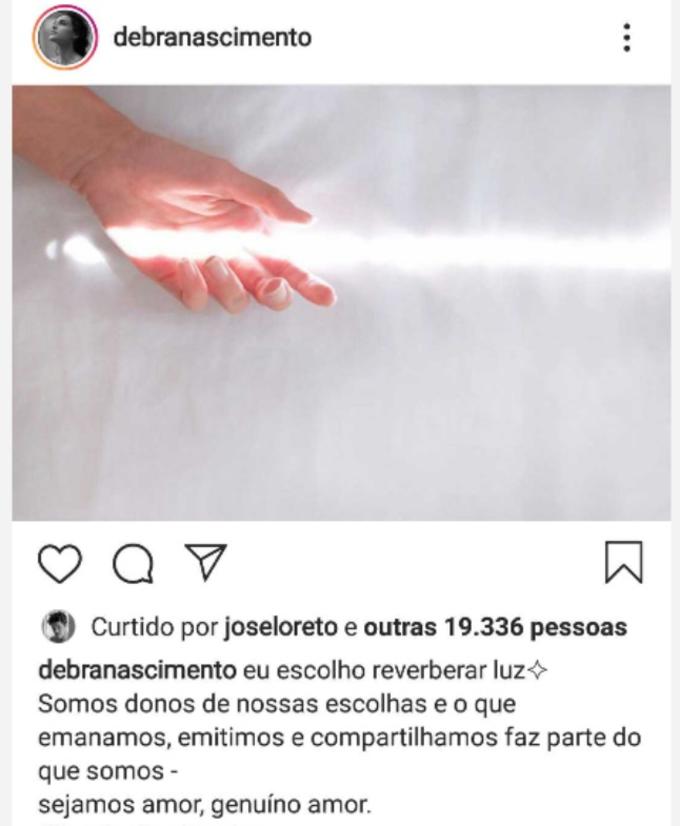 Depois do flagra ter sido exibido no programa “Fofocalizando”, do SBT, a atriz fez um post reflexivo: “Eu escolho reverberar luz. Somos donos de nossas escolhas e o que emanamos, emitimos e compartilhamos faz parte do que somos - sejamos amor, genuíno amor. Ilumine sua sombra”, escreveu.