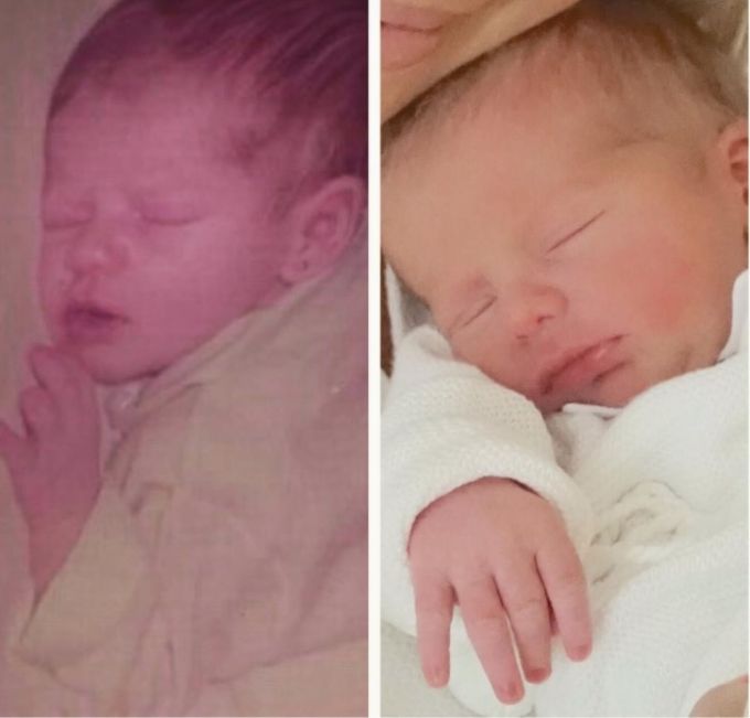 Karina Bacchi revirou o baú e publicou em seu Instagram uma foto antiga em que aparece recém-nascida. A atriz fez uma montagem com a foto do filho, Enrico, e impressionou pela semalhança.