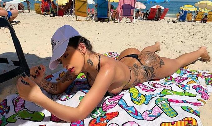 A funkeira compartilhou diversas fotos de biquíni na praia, deixando em evidência as marquinhas de biquíni e tatuagem, arrancando elogios dos marmanjos de plantão.