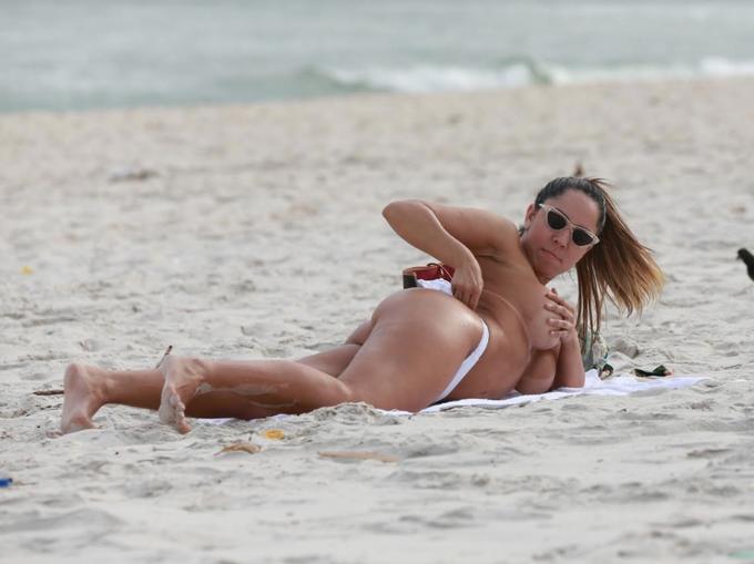 Mulher Melão burlou a quarentena e foi flagrada fazendo topless na praia da Barra da Tijuca, no Rio de Janeiro, nesta terça-feira (14).