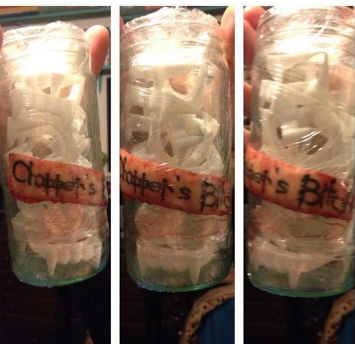 Os restos da tatuagem foram colocados em um frasco, embrulhados e enviados via correio registrados para seu ex-namorado. Ela ainda rastreou o objeto para saber quando Chopper de 24 anos, receberia o item.