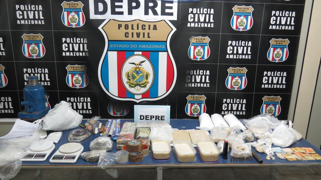No lugar os policiais apreenderam aproximadamente 15 kg de substâncias entorpecentes com características de cocaína em pó, pasta base de cocaína, oxi e maconha prensada, um carregador de pistola PT.40 com nove munições intactas, uma prensa e um macaco hidráulico, três balanças de precisão, R$ 1.241,00 mil em espécie, além de material para o refino e embalo da droga.