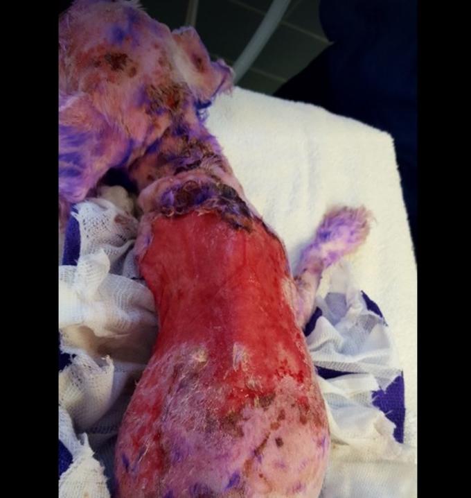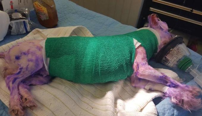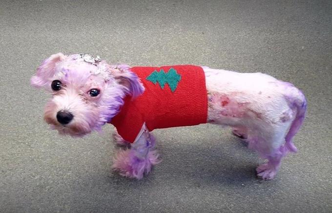 As queimaduras químicas causadas pelo uso do produto trouxeram dor e sofrimento à Violet. Foi então que o Pinellas County Animal, socorreu a cachorrinha que, quando chegou, estava apática e chorando de dores. Os primeiro ato foi tentar retirar a maior quantidade possível de tinta e medicá-la contra a dor.